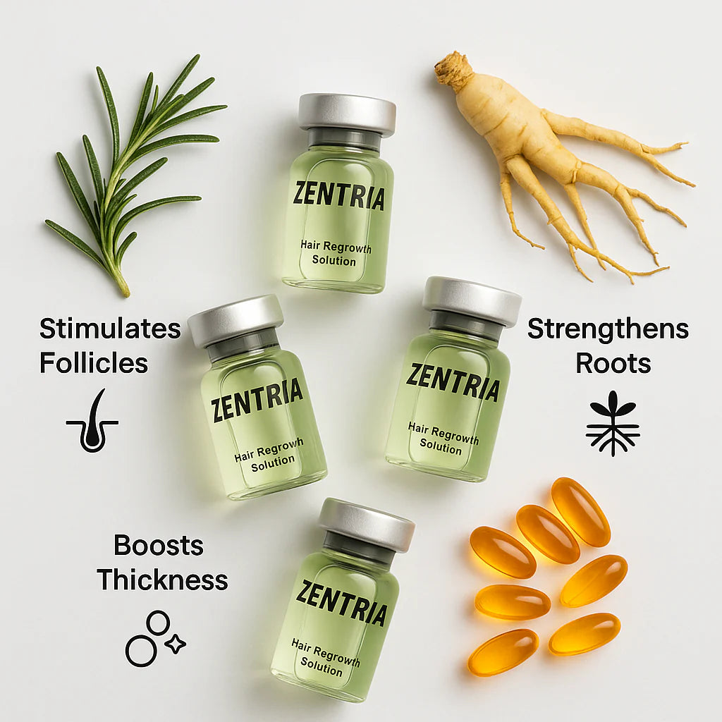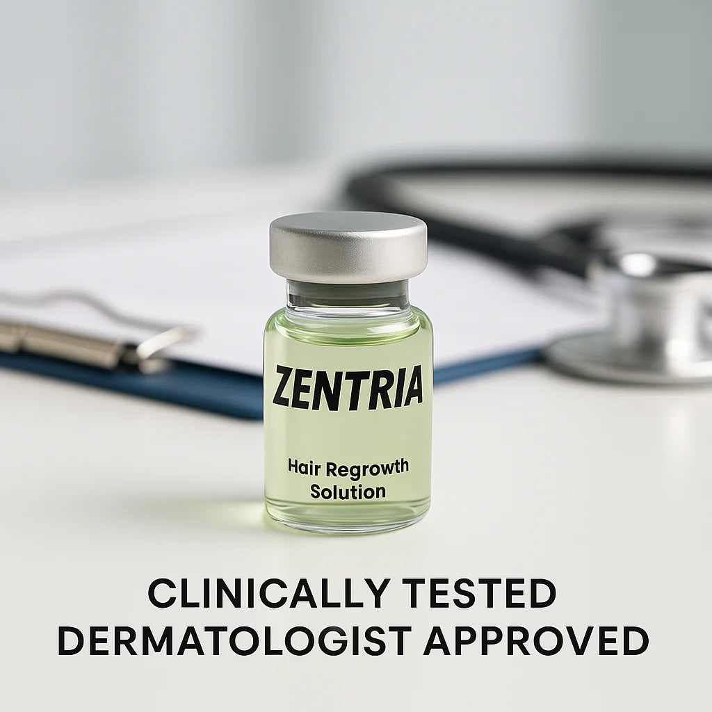 Restore confidence with Zentria™ Hair Regrowth Solution — a clinically tested, dermatologist-approved formula designed to stimulate follicles, support scalp health, and encourage visible regrowth.